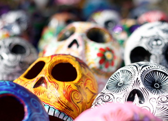 A common symbol of the day is the skull and sugar skulls are left with the name of the recipient inscribed on the forehead. People will also wear costumes with skull masks. Many people carry day of the dead skeleton dolls as good luck.